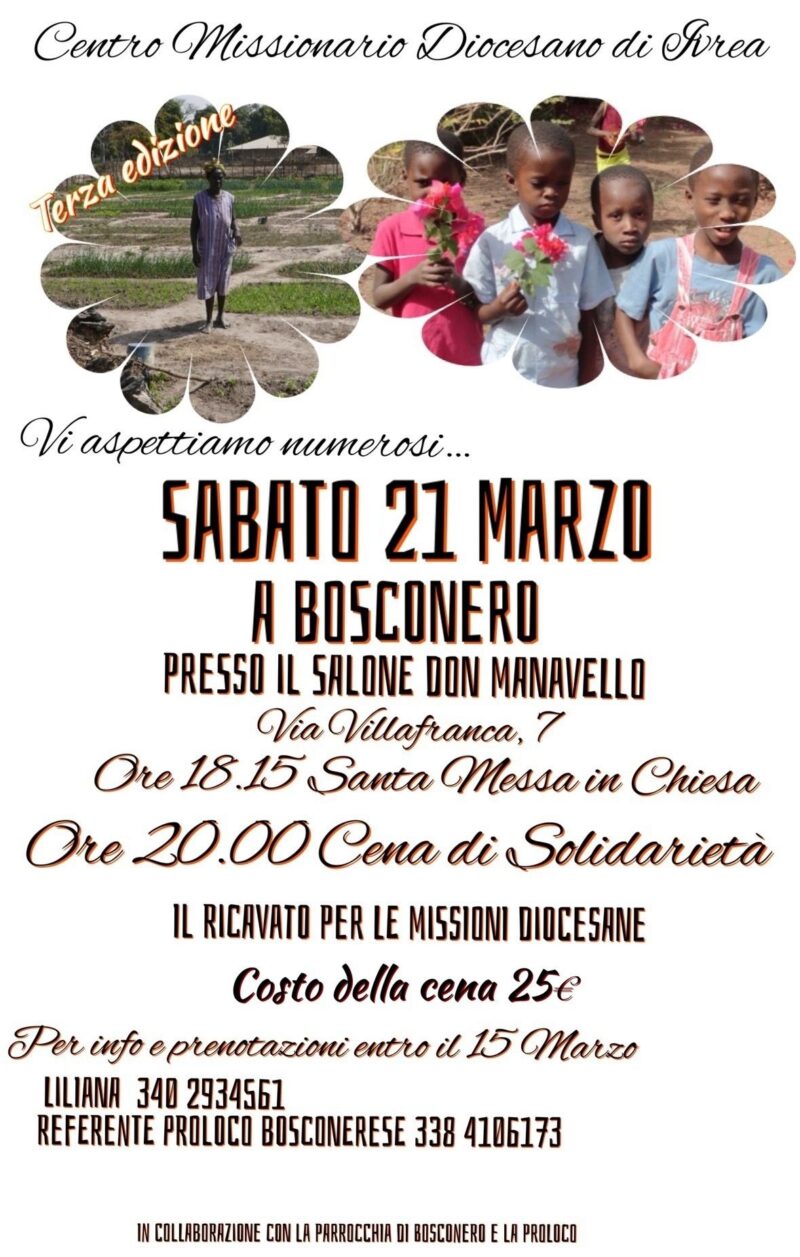 Il Centro Missionario Diocesano di Ivrea vi aspetta numerosi sabato 21 marzo 2026 a Bosconero (salone don Manavello, via Villafranca 7 Bosconero).