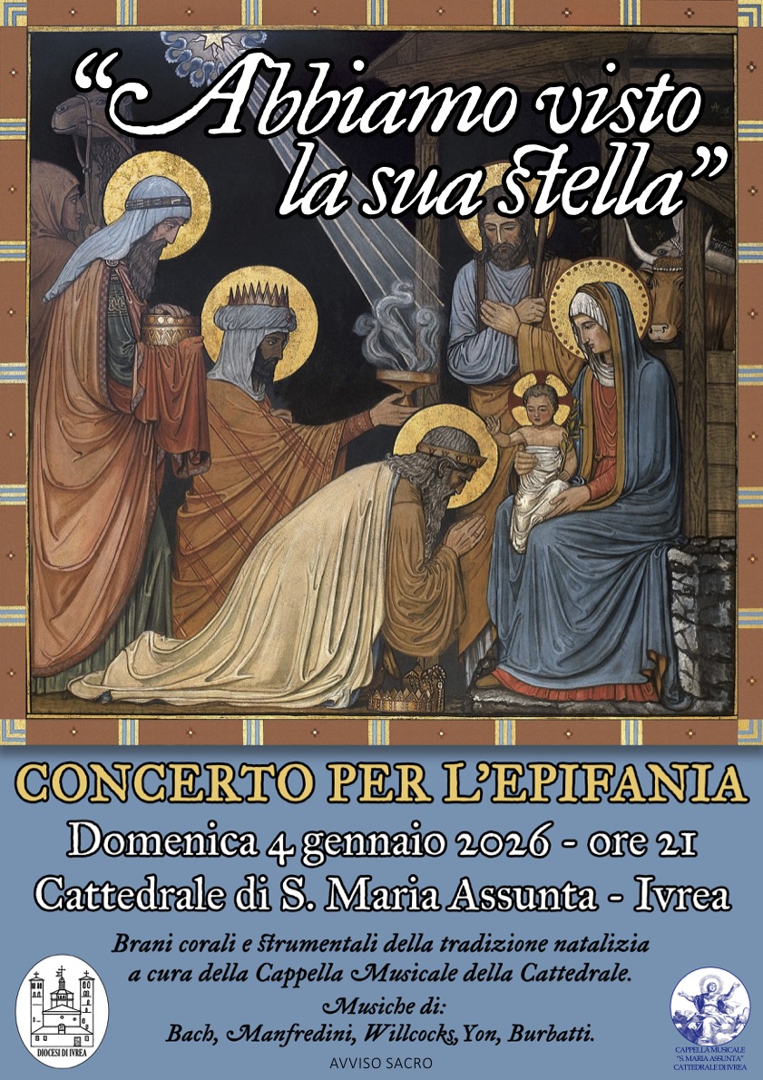 Concerto per l’Epifania, domenica 4 gennaio 2026 ore 21, Cattedrale di Santa Maria Assunta, Ivrea. Brani corali e strumentali della… Read More