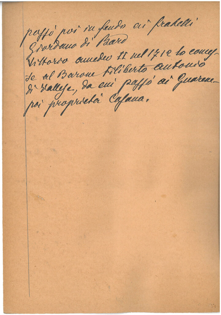 Vittorio Amedeo II nel 1712 lo concesse al Barone Filiberto Antonio di Vallesa, da cui passò ai Guarene poi proprietà Casana.