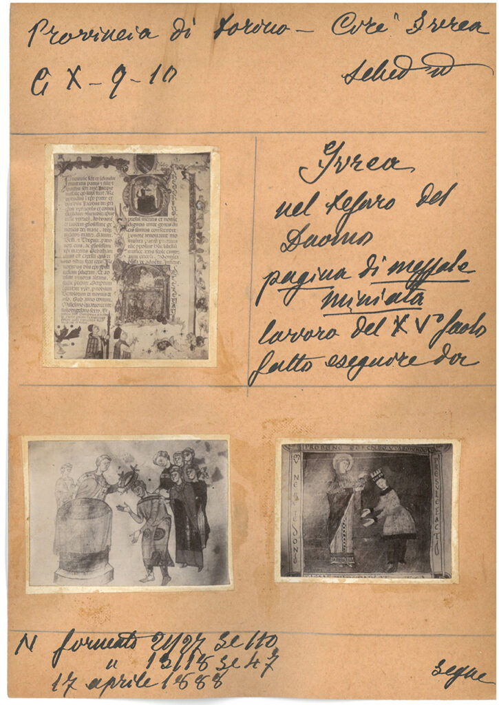 Lavoro del XV secolo fatto eseguire da Giacomo Pomerio, vescovo e Conte di Ivrea dal 1417 al 1437 e scritto da Bartolotum de Magnis di Milano nel 1439 e il nobile Dominus Georginus de Balbis di Chieri, lo fece continuare e finire.