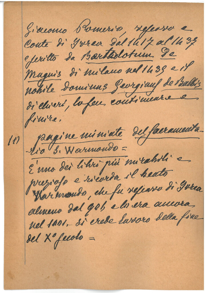 È uno dei libri più mirabili e prezioso e ricorda il beato Warmondo, che fu vescovo di Ivrea almeno dal 906 e lo era ancora nel 1001. Si crede lavoro della fine del X secolo.